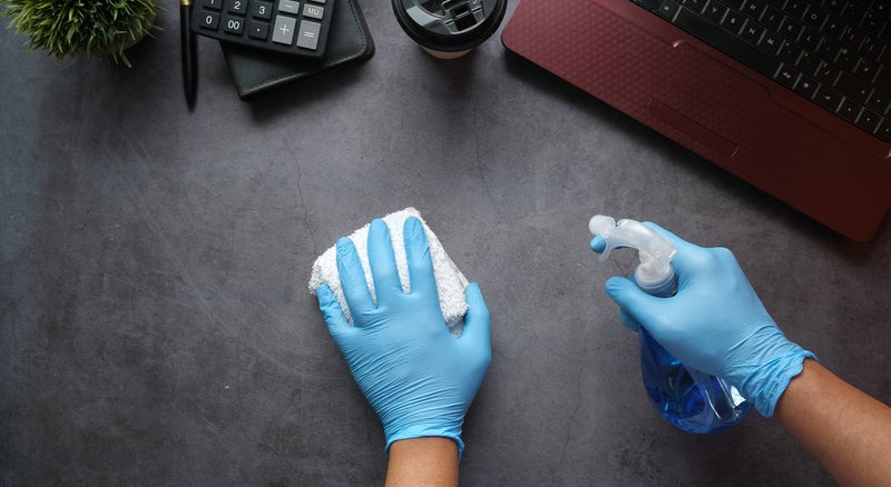 - Damma och torka av fria ytor (skrivbord, avlastningsbord, hyllor, skåp etc.)